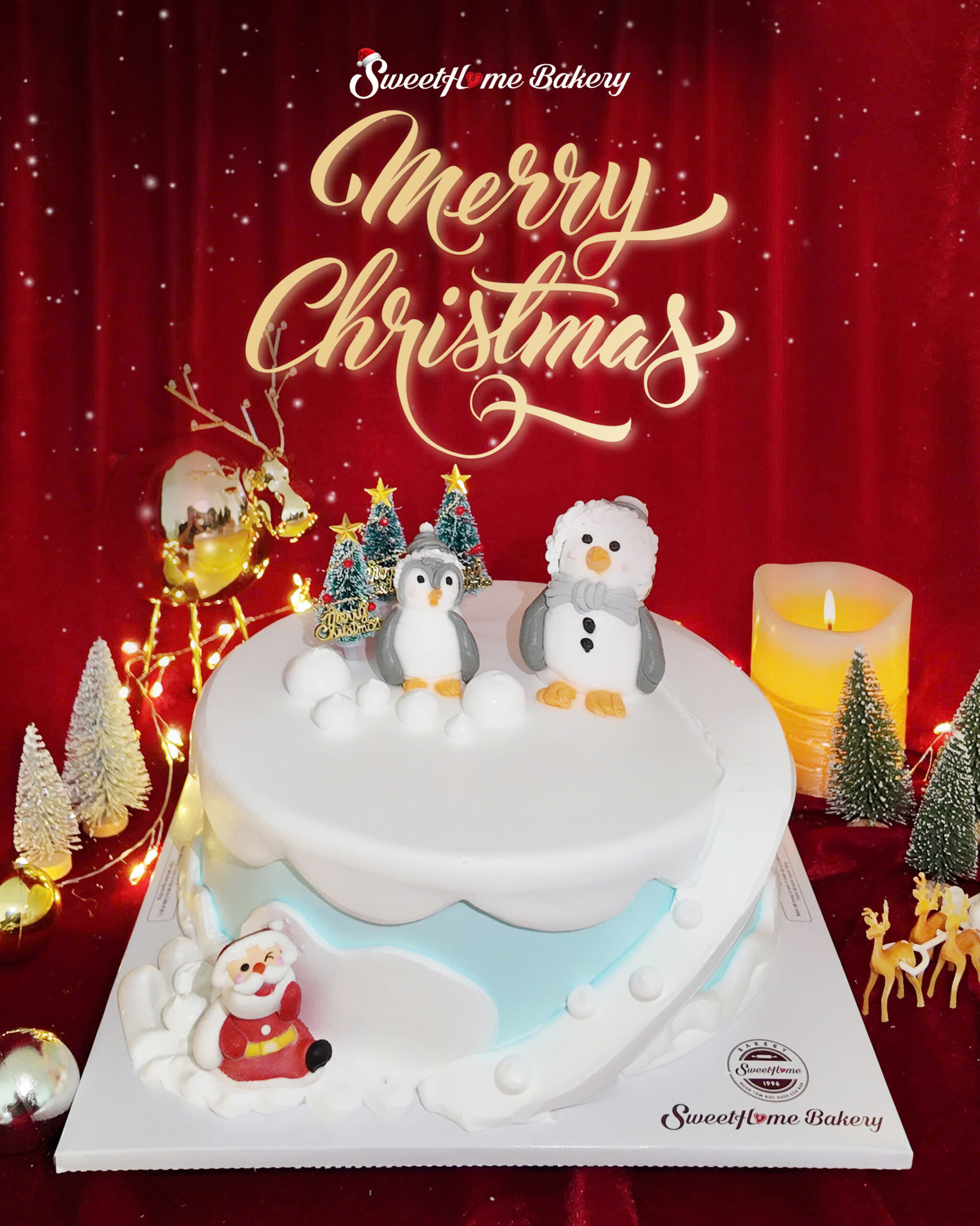 Bánh kem sữa tươi Noel tại SweetHome Bakery được làm từ cốt bánh mềm nhẹ, kem sữa tươi béo nhẹ, ít ngọt, tạo hình nhân vật mang đậm không khí Giáng Sinh ấm áp. Bánh phù hợp cho bữa tiệc Noel gia đình, văn phòng hoặc quà tặng dịp lễ cuối năm.
